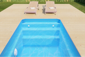 La piscine Belfort est le plus petit de nos modèles, idéale pour des petits terrains.